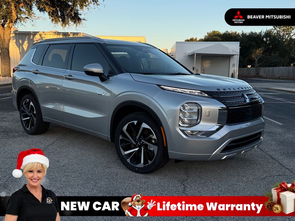 Alloy Silver Metallic 2025 Mitsubishi Outlander PHEV SEL 4WD 1-Speed Automatic 2.4L 4-Cylinder DI DOHC 4.9 Star Dealer Rater Reviews, 4.7 Star Google Reviews.