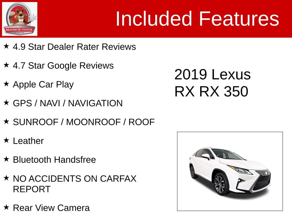 Experience the epitome of luxury and performance with this stunning 2019 Lexus RX 350. This meticulously maintained SUV is a true testament to Lexus' commitment to craftsmanship and innovation.