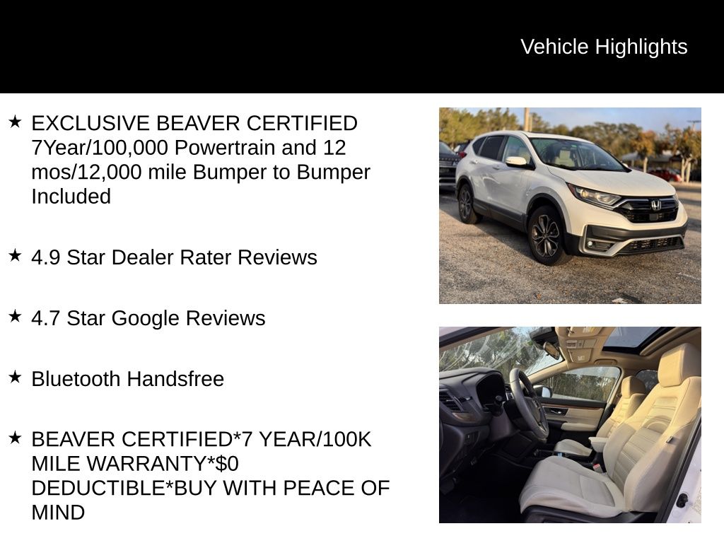 This 2020 Honda CR-V EX has been meticulously inspected and certified by our team of experts. With a 7-year/100,000-mile powertrain warranty and a 12-month/12,000-mile bumper-to-bumper warranty, you can drive with confidence knowing that your investment is protected.