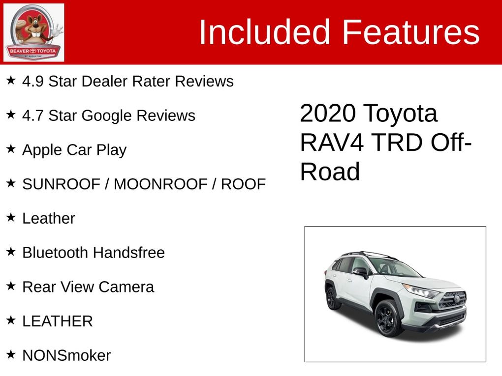 This 2020 Toyota RAV4 TRD Off Road is a true off-road adventure-seeker's dream. With its rugged yet refined design, advanced technology, and exceptional performance capabilities, this SUV is poised to take you to new heights of exploration and excitement.