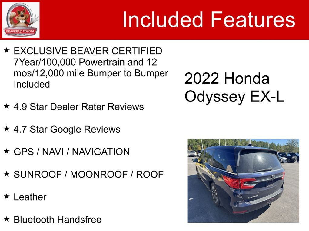 Obsidian Blue Pearl 2022 Honda Odyssey EX-L FWD 3.5L V6 SOHC i-VTEC 24V