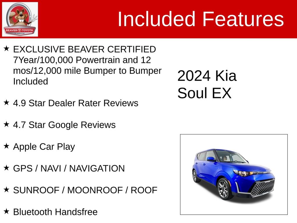 Don't miss your chance to experience the exceptional value and uncompromising quality of this 2024 Kia Soul EX. Visit our showroom today and let us demonstrate how this remarkable vehicle can enhance your driving experience. We're confident that once you take it for a test drive, you'll be convinced that this is the perfect car for you.