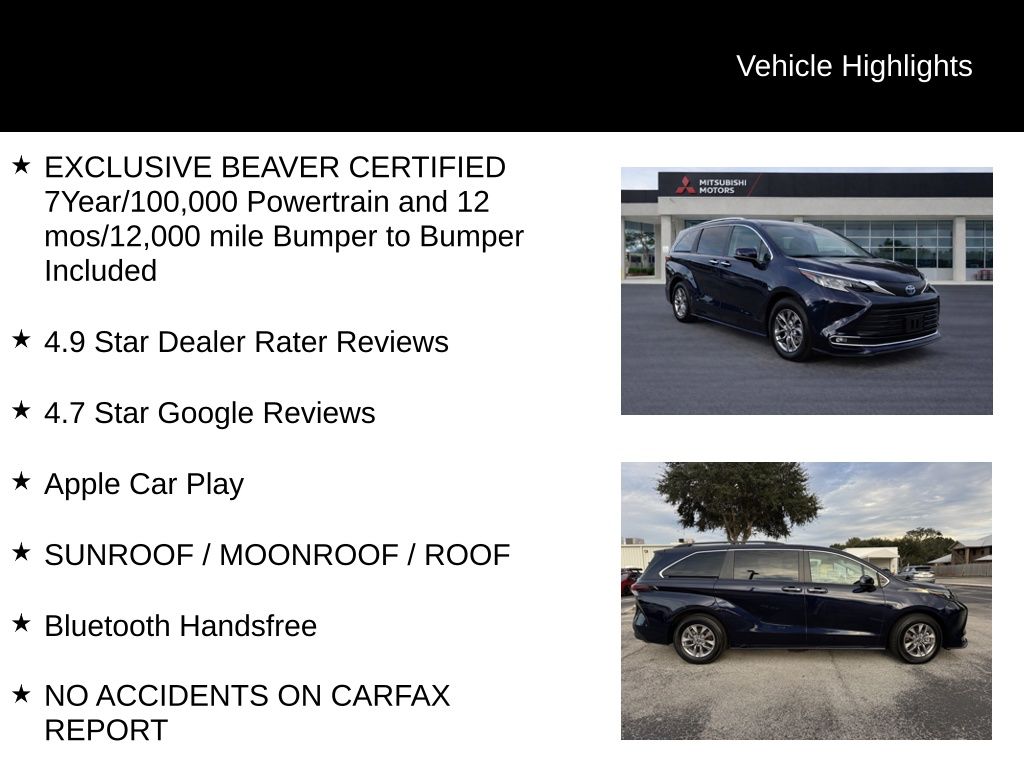Beaver Certified: This Toyota Sienna has undergone a rigorous inspection process and comes with a comprehensive warranty, giving you the peace of mind you deserve. With an impressive 4.9-star Dealer Rater and 4.7-star Google review rating, you can trust that you're getting a top-notch vehicle and exceptional customer service.